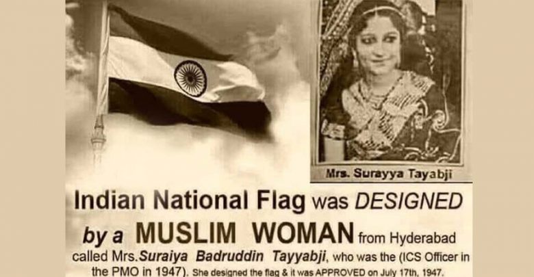 ২২ শে জুলাই ভারতের জাতীয় পতাকার জন্মদিন। ১৫ আগষ্ট ভারতের স্বাধীনতার জাতীয় দিবস উপলক্ষে বিশ্বের সর্ববৃহত এই গণতান্ত্রীক দেশটিকে পতাকা উত্তোলন করা হয় মহা সমারোহে। কিন্তু তেরঙ্গা এই পতাকার ডিজাইনার হিসেবে নাম রয়েছে এক মুসলিম নারীর। ভারতের ইতিহাস বিবৃতির আশ্রয় নিয়ে সেই মুসলিম নারীর নাম গোপন করে ফেলা হয়েছে দীর্ঘ প্রচেষ্টার মাধ্যমে। “ভারতের জাতীয় পতাকার নকশা বানিয়েছিলেন একজন মুসলীম নারী, ICS বদরুদ্দীন তায়েবজী’র স্ত্রী সুরাইয়া” এমনটাই লেখা রয়েছে ইংলিশ ইতিহাসবিদ ট্রেভোর রয়েলের বইতে। সুরাইয়ার করা নকশা পন্ডিত নেহেরুর ভালো লাগায় তিনি নিজের গাড়ীর বনেটে তা লাগিয়ে নিয়েছিলেন।