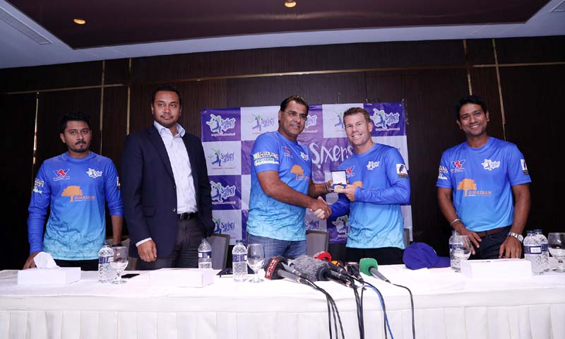রাজধানীর ইন্টারকন্টিনেন্টাল হোটেলে বৃহস্পতিবার (৩ জানুয়ারি) সন্ধ্যায় সংবাদ মাধ্যমের সঙ্গে ডেভিড ওয়ার্নারকে অধিনায়ক হিসেবে পরিচয় করিয়ে দেন সিলেট সিক্সার্সের চেয়ারম্যান শাহেদ মুহিত, ব্যবস্থাপনা পরিচালক মাশেদ আব্দুল্লাহ ও ফ্র্যাঞ্চেচাইজির প্রধান নির্বাহী কর্মকর্তা ইয়াসের ওবায়েদ।